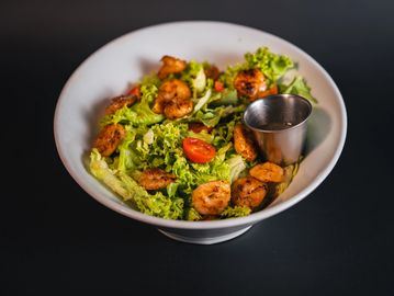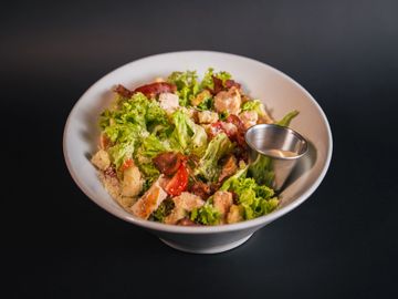lechuga , pollo,tomate cherry, queso parmesano y crutones