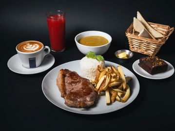 entrada + plato principal + jugo, postre, café o te