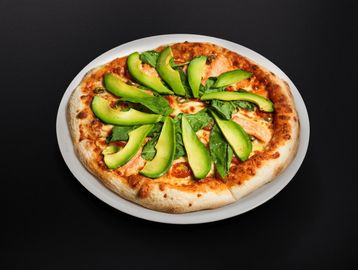 Queso mozzarella, salmón, palta y tomate cherry
