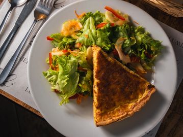 Masa brisee rellena de huevo y bacon