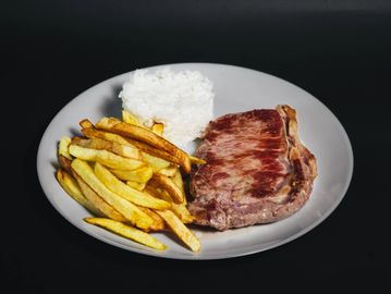 200 g de lomo acompañado de arroz, ensalada o puré