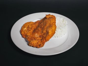 Milanesa de pollo apanada, acompañada de arroz