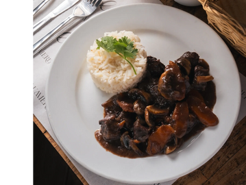 Carne de vacuno cocida a fuego lento en vino tinto