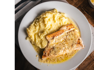 Salmón en salsa de limón y eneldo, acompañado de arroz